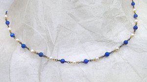 Diese einreihige Kette ist in verschiedenen Farben vorrätighier Lapislazuli auf Silber und Perlen auf 750Gold
