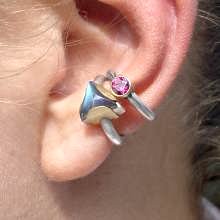 Goldkegel 750/ooomit Granatauf silbernen Ohrclips