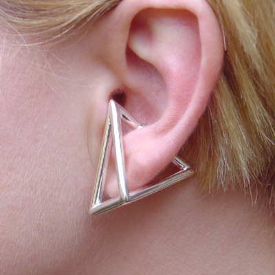 Kreole 2014 Tetraeder Silber 925/ooo, matt und teilweise poliert. Diese Kreole paßt zueiner Z-Kreole 2013