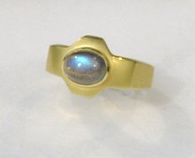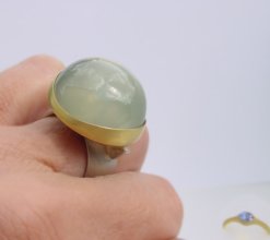 Silberringgroßer indischer Mondstein ø 24 mm goldgefasst