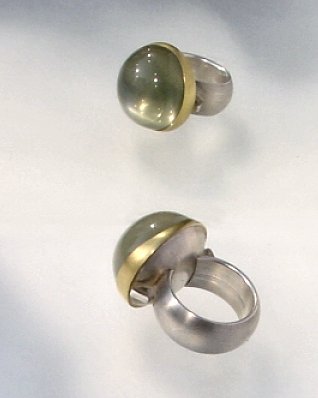 Goldringe 750/ooooben mit Tsavorit (grüner Granat) unten mit Labradorit